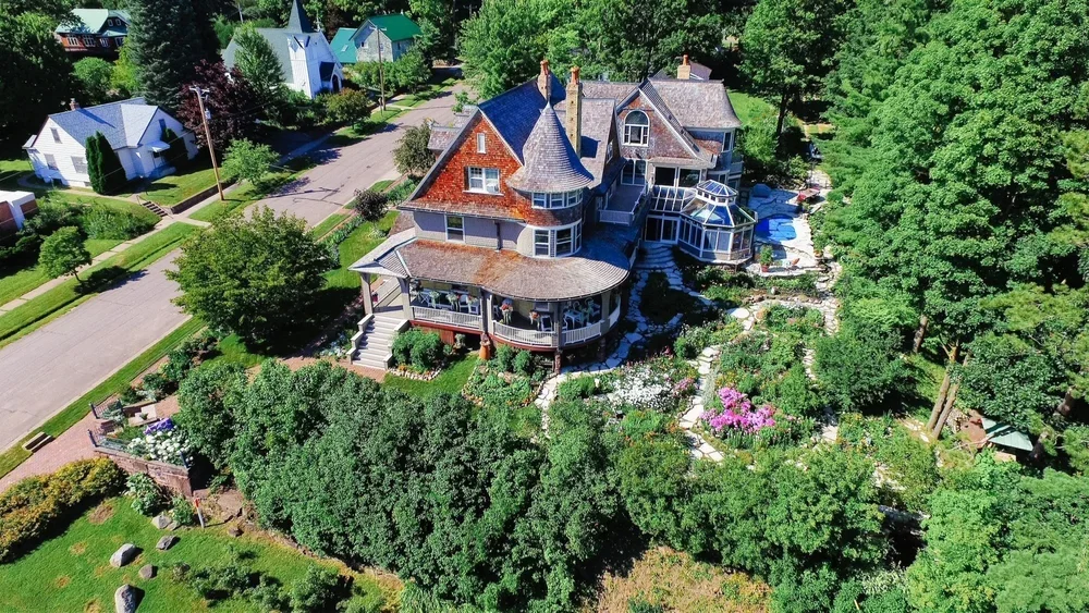 Queen’s View Bed & Breakfast is an historic estate atop a hill in Bayfield, Wisconsin. The stately Queen Anne home is comprised of the original home, built in 1892 (see more, below), and an addition, constructed in 1986. Charming rooms and within walking distance to St James Social.